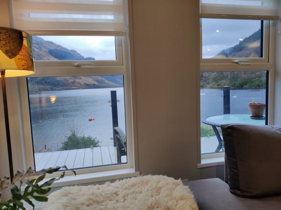 Access from the side decking are which extends to the front with addition patio doors to the Lochside
