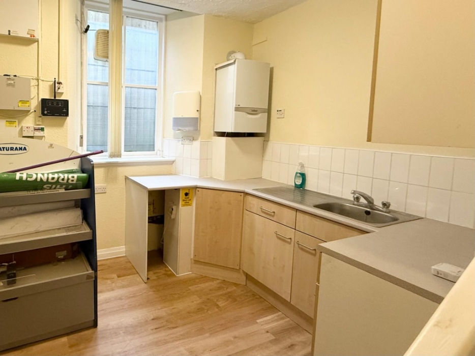 Office located to the back again with window to Moir st. The electric fuse box and comsumer unis are located here. Radiator . Fitted shelving and cupboards