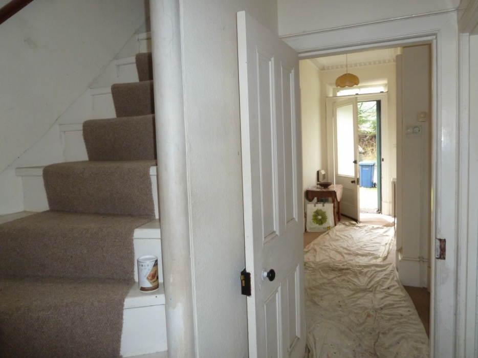 Access lounge, bedroom, dining room, Kitchen, hall cupboard. Door to back hall and the back stairs leading to the cellar and garden, radiator. The consumer unit and fuse box is located by the front door
